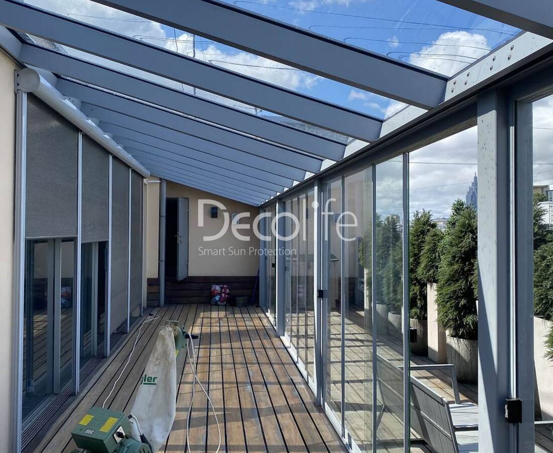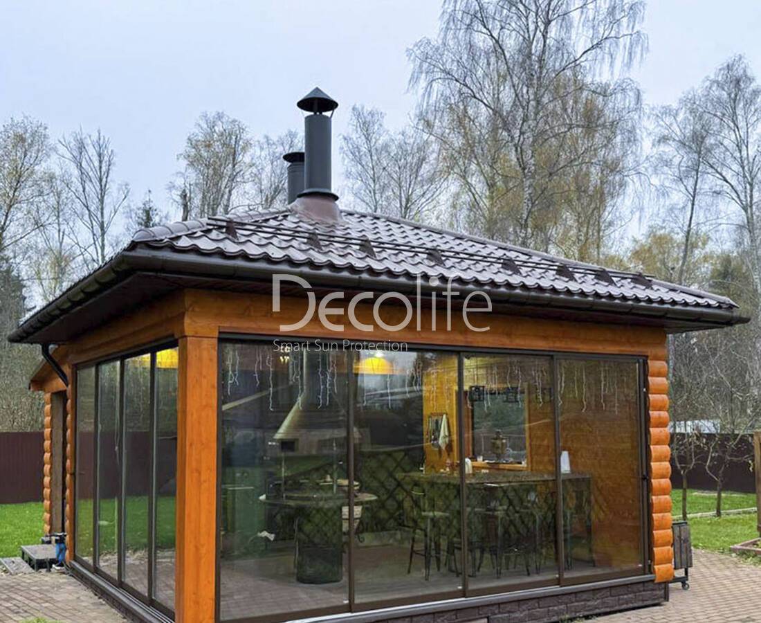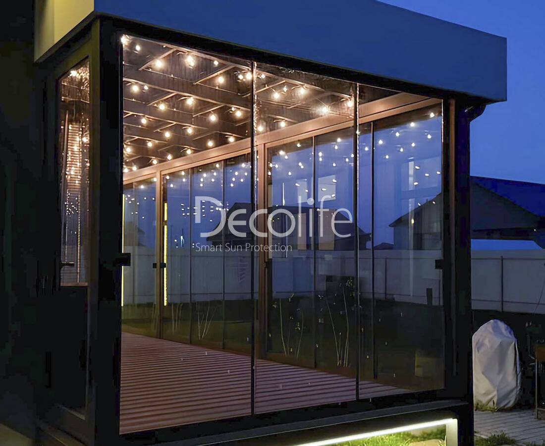 Остекление этого типа становится прекрасным дополнением к перголам Decolife, делает их более практичными, функциональными и элегантными. В зависимости от размеров помещения, устанавливается максимум 12 панелей.