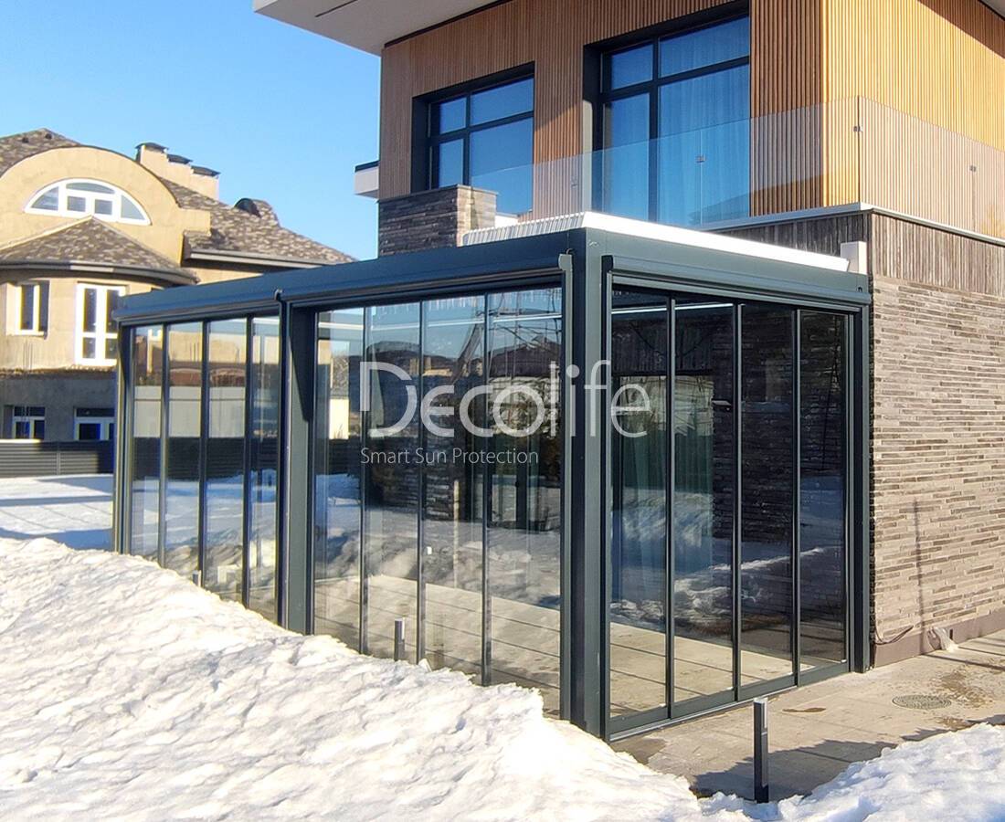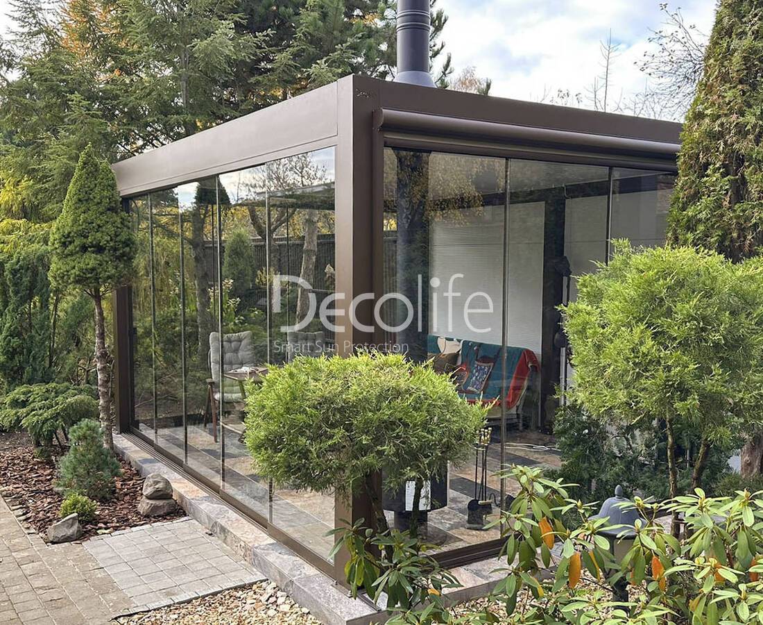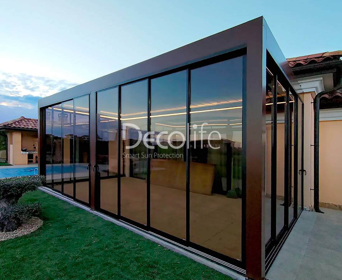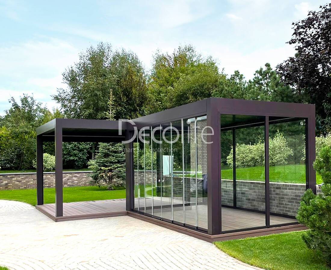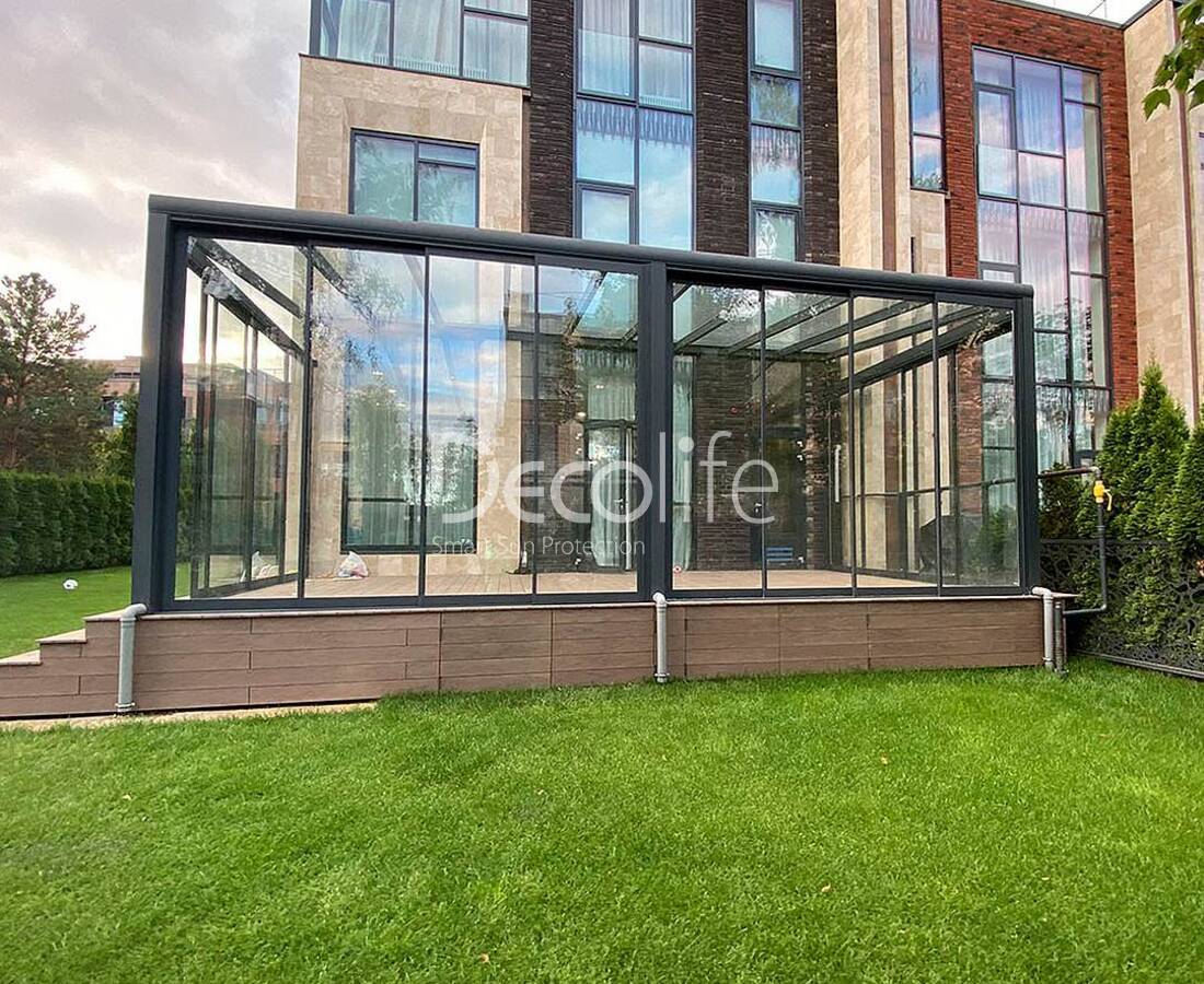 Системы, совместимые с каждым типом пергол Decolife, могут включать до 10 створок. Это позволяет оформить даже самые просторные помещения. Теплое и полутеплое остекление обеспечивает отличную теплоизоляцию.