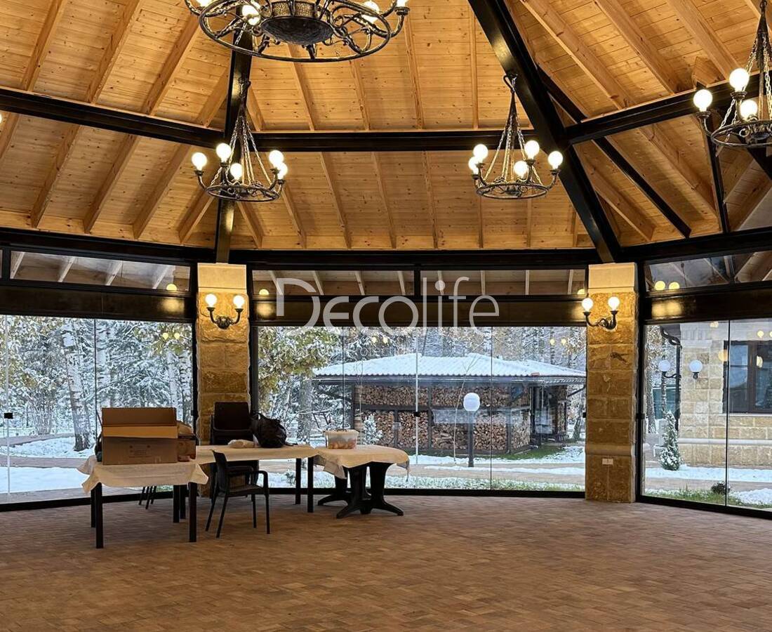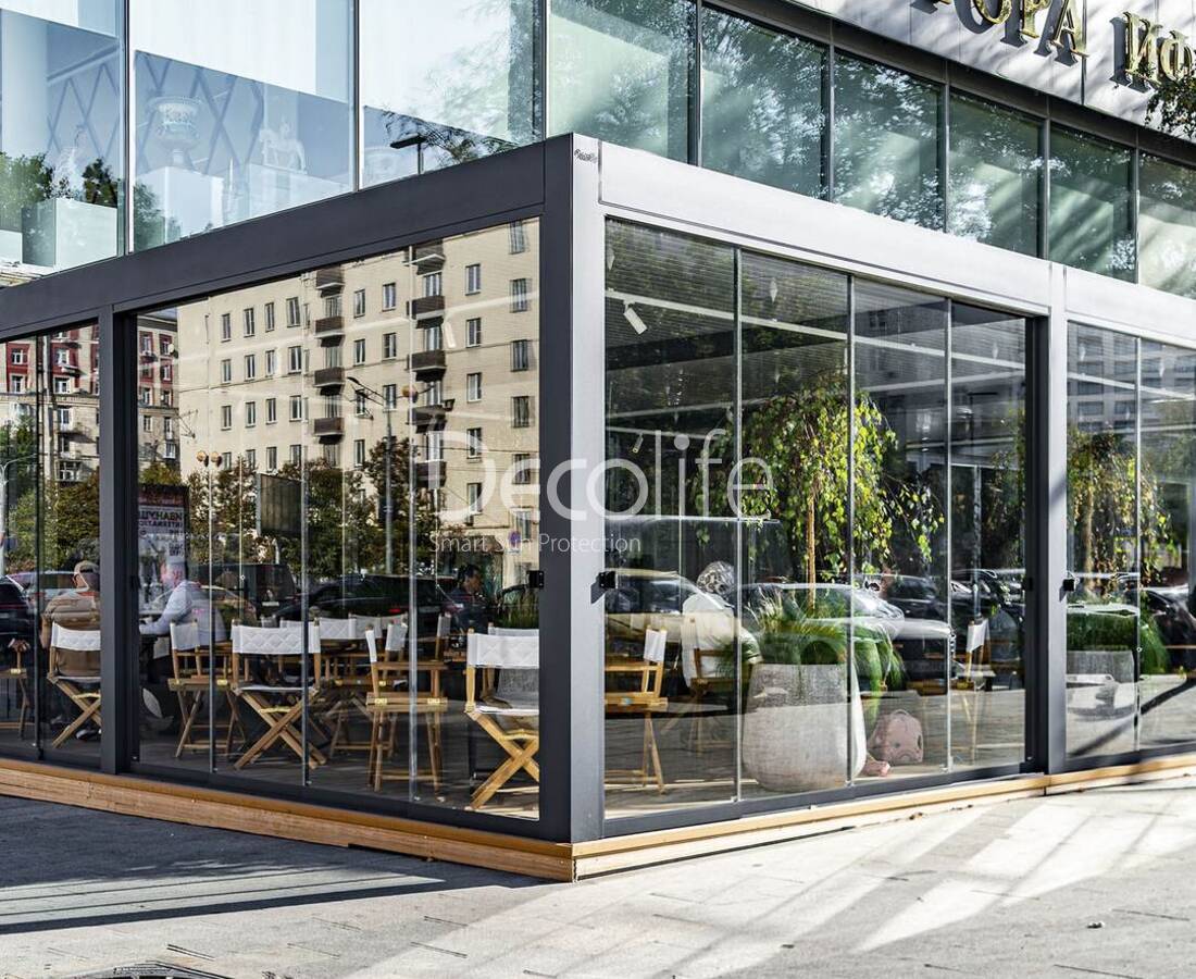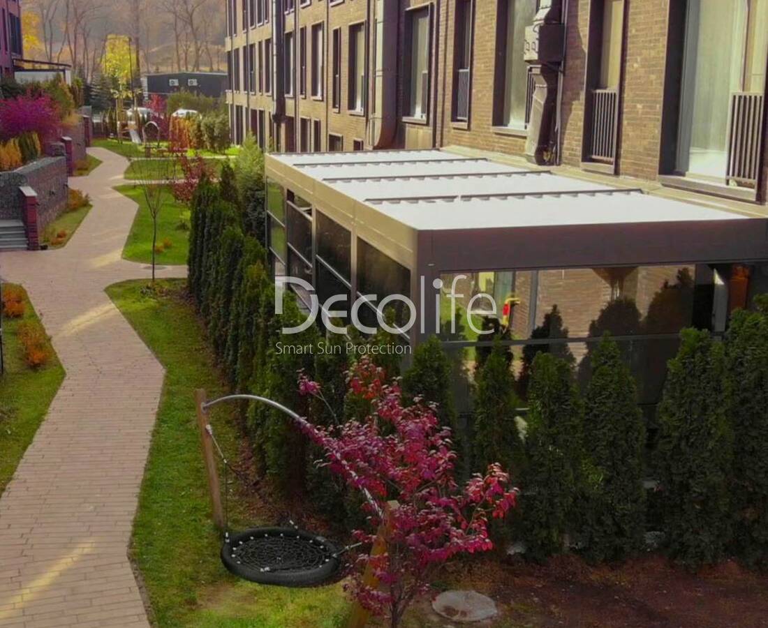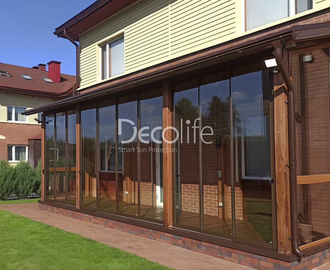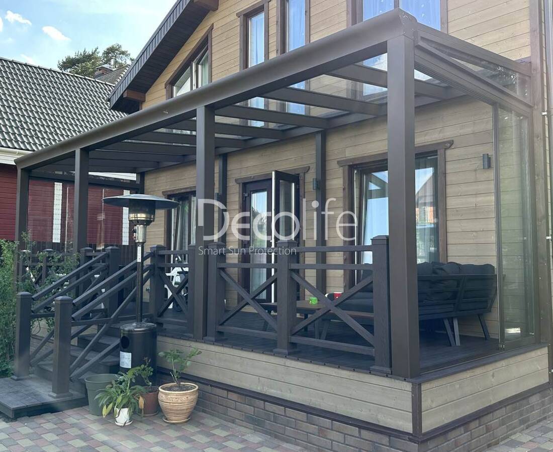 Системы, совместимые с каждым типом пергол Decolife, могут включать до 10 створок. Это позволяет оформить даже самые просторные помещения. Теплое и полутеплое остекление обеспечивает отличную теплоизоляцию.